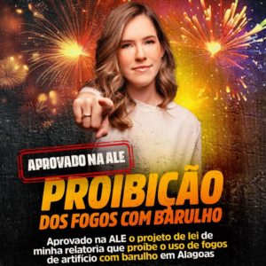 ALE APROVA LEI PROIBINDO FOGOS DE ARTIFÍCIO COM ESTAMPIDO EM AL; “DIA QUE ENTRA PARA A HISTÓRIA “, COMEMORA DEPUTADA CIBELE MOURA