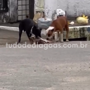 VÍDEO: Dois cães da raça pitbull atacam e matam um gato em via publica no conjunto Salvador lyra, em Maceió