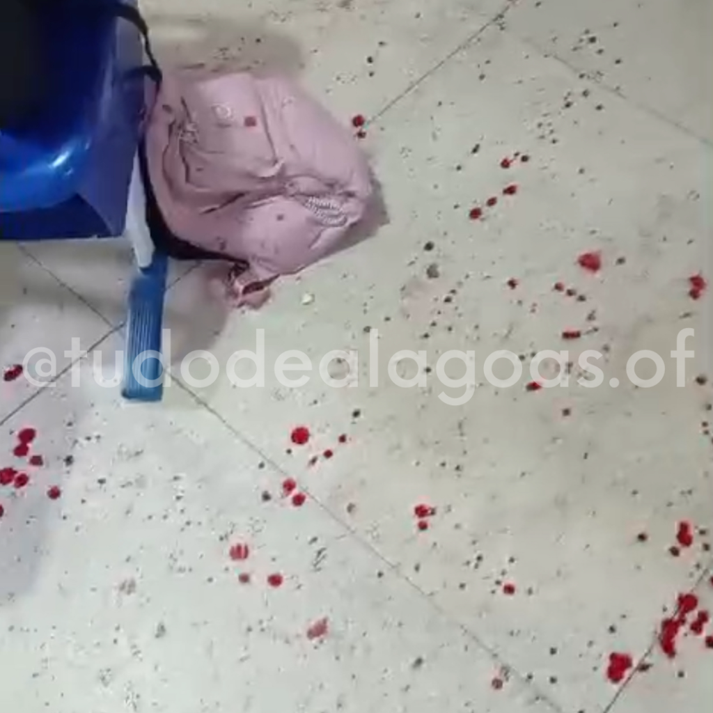 Imagens registradas na sala de aula mostram a presença de várias marcas de sangue no chão. Muitas pessoas ficaram assustadas e foram para a parte externa da escola, onde observaram com apreensão os desdobramentos do caso.