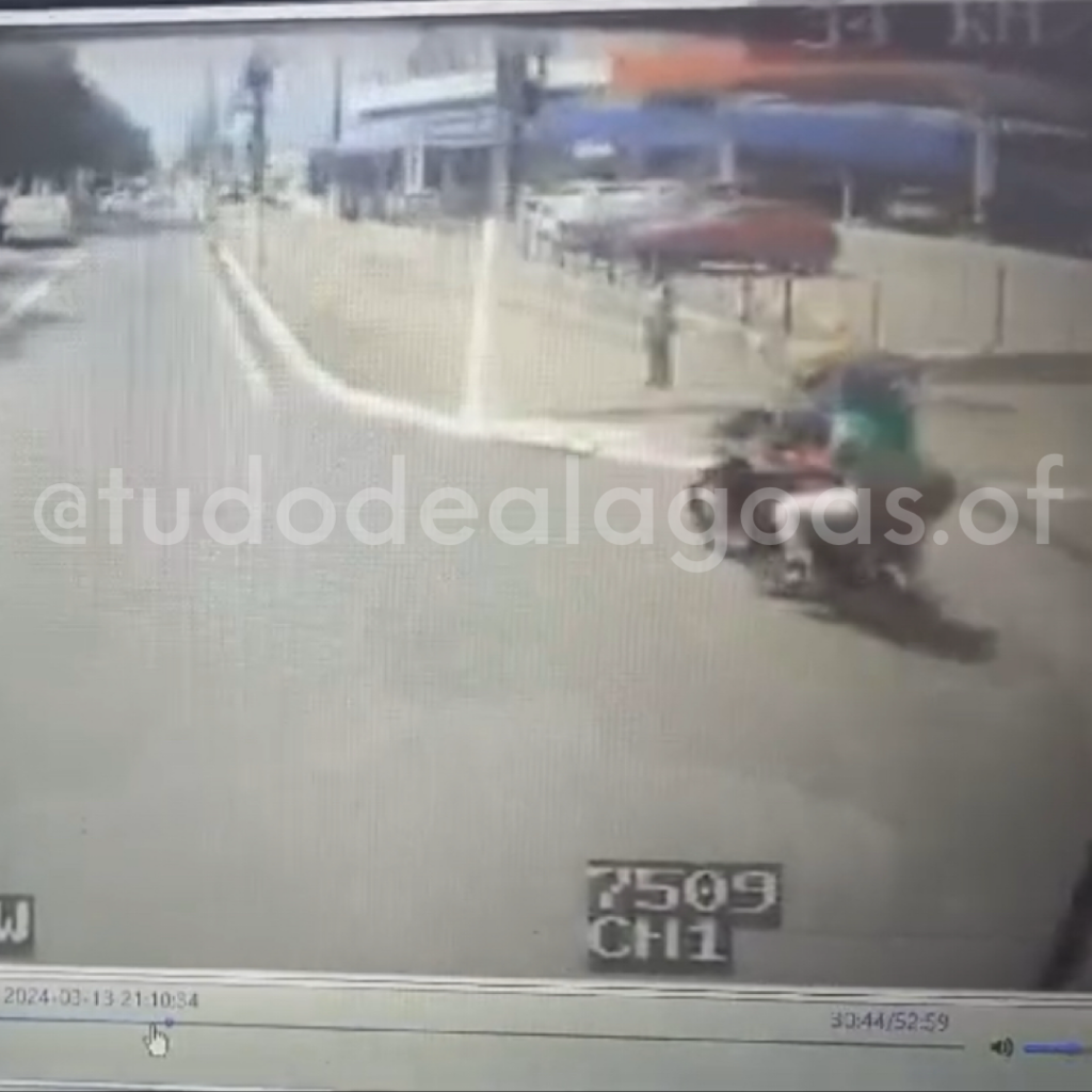 A imagem mostra que o piloto da moto saiu da calçada, pegou a contramão da Alameda Dr. Moacyr Tavares Lopes em direção à Avenida Fernandes Lima e entrou na frente do ônibus, no Farol. A mulher morreu ainda na pista.