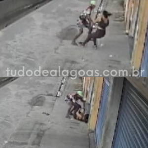 VÍDEO: câmera flagra assaltante agredindo mulher em via pública para roubar bolsa, em Arapiraca