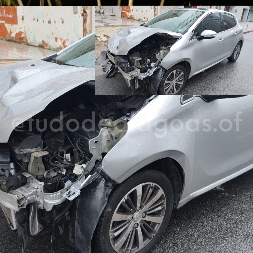Um motociclista teria passado um semáforo intermitente, em um cruzamento, quando colidiu contra um carro, um Peugeot.
