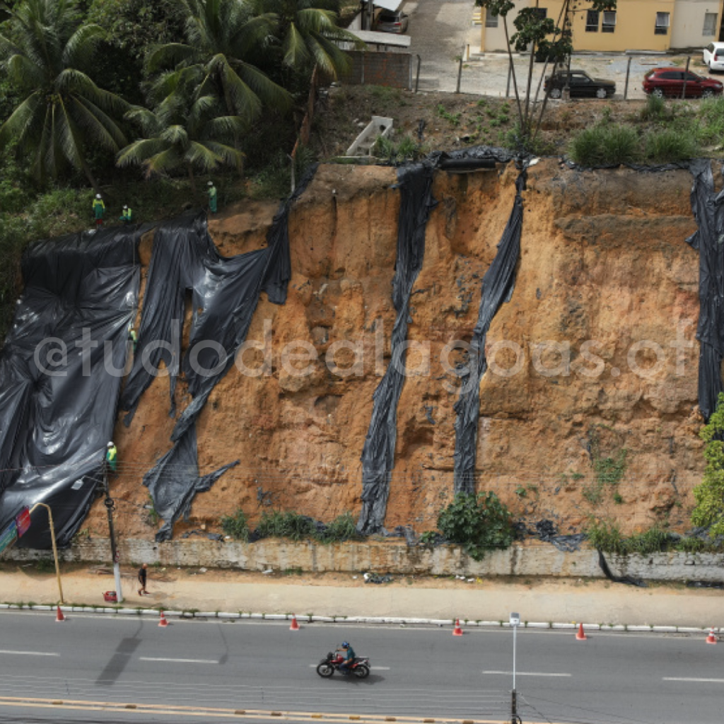A lona é uma proteção paliativa, mas que tem apresentado um resultado eficaz, colaborando para a redução das ocorrências de deslizamentos em Maceió”, explica Matheus Montenegro, diretor de planejamento, prevenção e redução de risco.