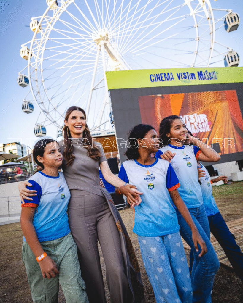 A primeira-dama de Maceió, Marina Cândia, proporcionou um momento especial para alunos da rede municipal de ensino ao levá-los para um passeio na Roda Gigante, na orla da capital, seguido de uma sessão de cinema ao ar livre com a exibição do documentário Vestir Massayó.