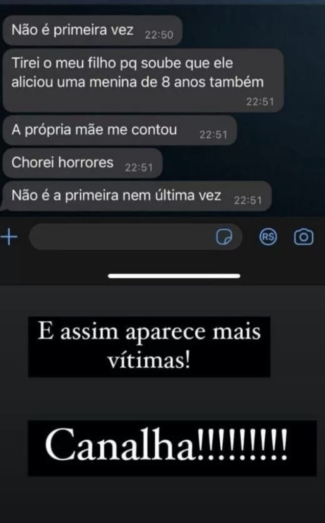 “Ver minha filha ser aliciada em troca de chocolate me deixou em choque. A gente acha que nunca vai acontecer conosco… É preciso vigiar”, escreveu a vítima.