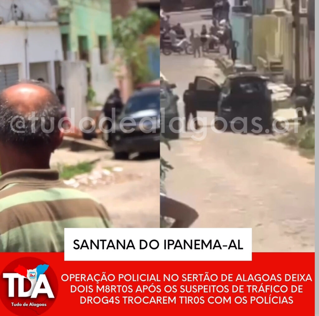 Uma operação contra o tráfico de entorpecentes, desencadeada neste domingo, 3, deixou dois suspeitos mortos. Imagens recebidas pelo Alagoas 24 horas mostram policiais militares arrastando um suspeito, supostamente sem vida, para dentro de uma viatura, na Rua José Aciolli, em Santana do Ipanema. Os suspeitos teriam sido encurralados em uma residência, numa rua paralela à BR 316.